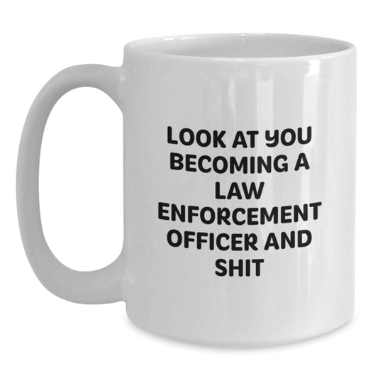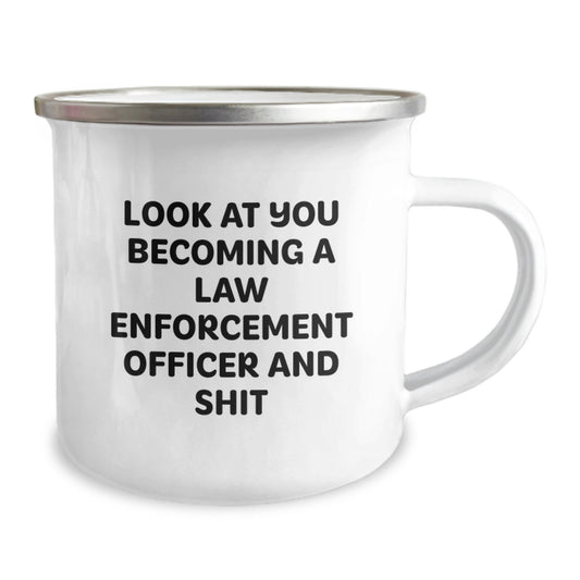 Funny Law Enforcement Officer Gifts for Him Birthday Unique Camping Mug with 'Look At You Becoming A Law Enforcement Officer And Shit' Quote, Gifts from Friends and Family