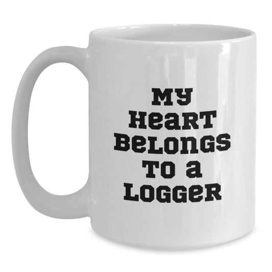 Funny Logger Gifts from Friends - My Heart Belongs To A Logger White Coffee Mug for Logger, Unique Graduation Gifts for Him or Her
