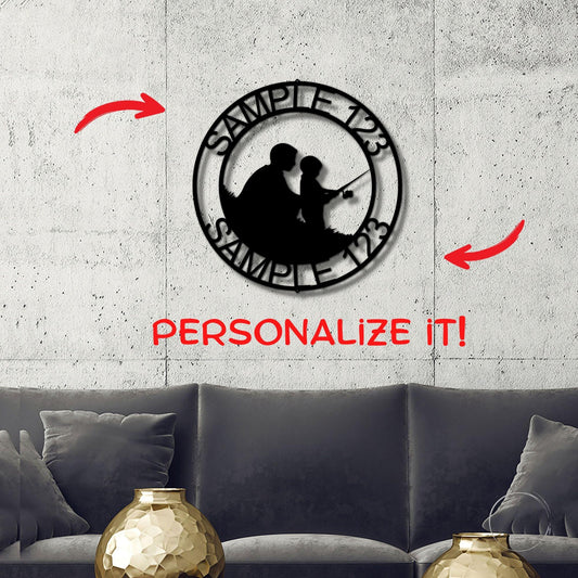 Father and Son Fishing Personalized Metal Wall Art Sign