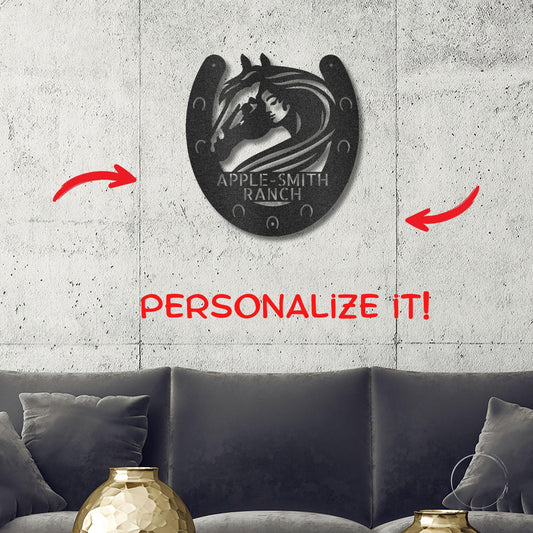 Horseshoe Monogram Personalized Indoor Outdoor Steel Wall Sign Art
