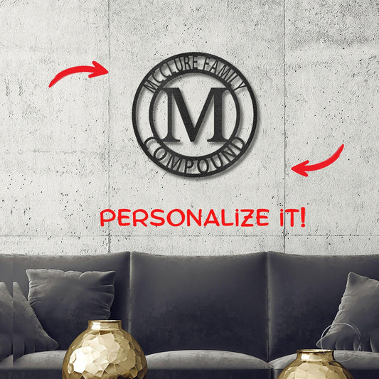 Initial Family Name Personalized Indoor Outdoor Steel Wall Sign Art