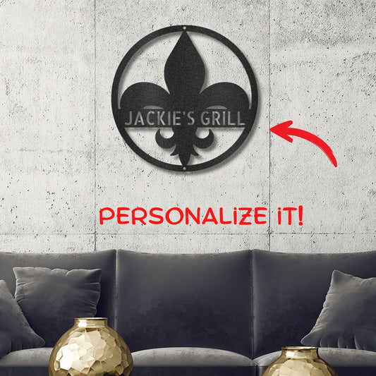 Fleur De Lis Monogram Personalized Indoor Outdoor Steel Wall Sign Art Décor