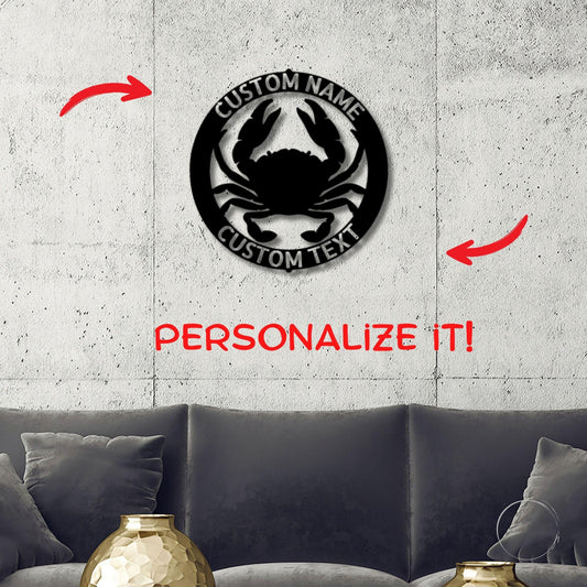 Crab Ring Monogram Personalized Steel Wall Sign Art