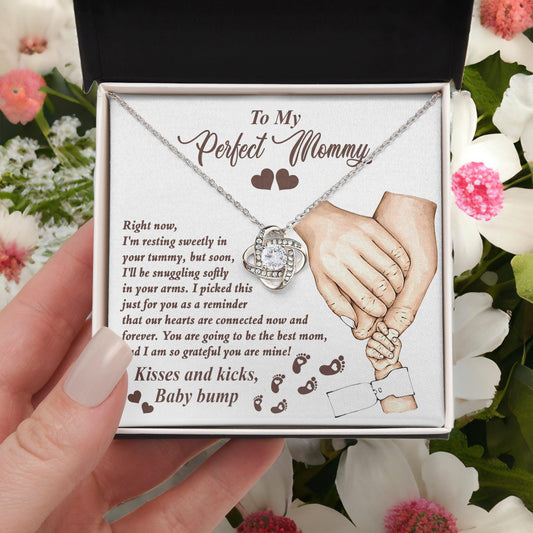 To My Perfect Mommy-to-Be Our Hearts are Connected Now And Forever - Love Knot Necklace