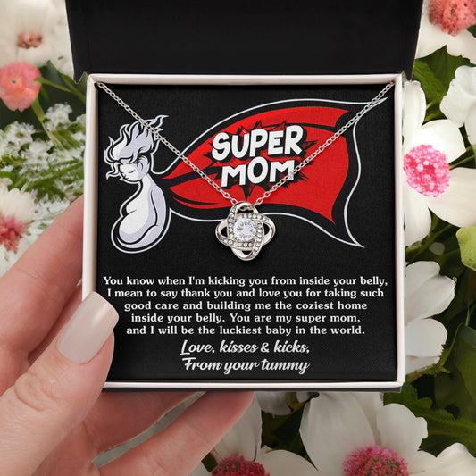 To My Super Mom-To-Be Kisses and Kicks from your Tummy - Love Knot Necklace