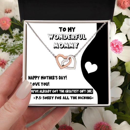 To My Wonderful Mommy to Be - Sorry For All the Kicking - Interlocking Hearts Necklace