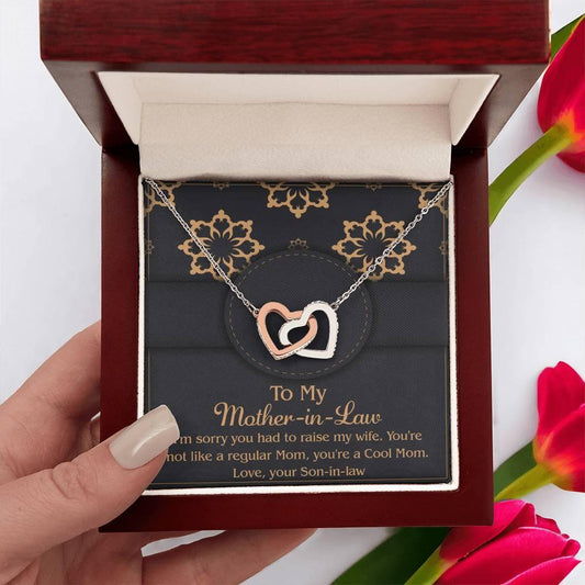 Gift for Mother-In-Law from Son-in-law You are a Cool Mom Interlocking Hearts Necklace