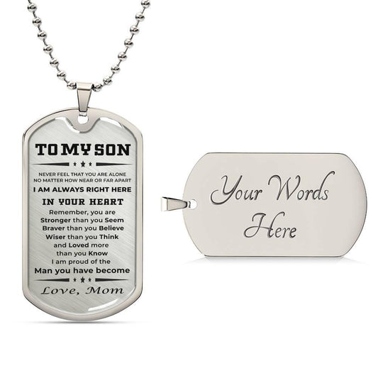 Gift for Adult Son Military Dog Tag Style Personalized Engraved Necklace Love Mom