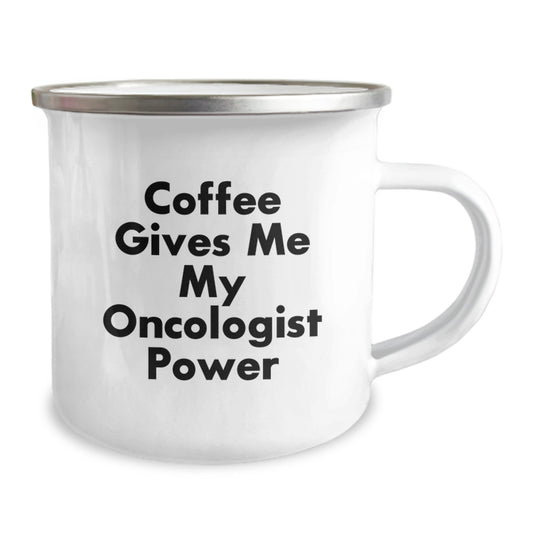 Oncologist Gifts from Friends - Funny Camping Mug 'Coffee Gives Me My Oncologist Power' for Men or Women on Christmas Unique Gifts