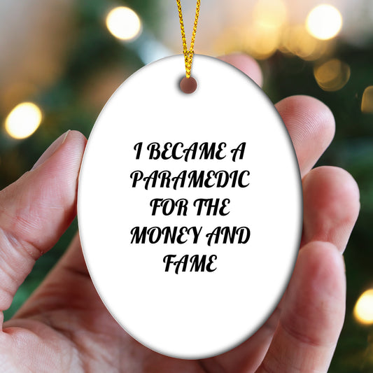 Paramedic Oval Ornament with Funny Quote I Became a Paramedic for the Money and Fame Gifts