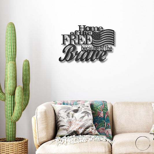 Home of the Free Because of the Brave Metal Wall Art – Patriotic American Flag Sign – Handmade Steel Indoor/Outdoor Décor (5 Sizes, 5 Colors)
