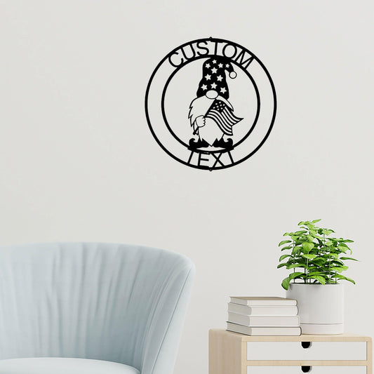 Patriotic Gnome Custom Name Metal Art Wall Sign