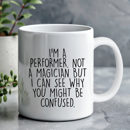 Performer White Coffee Mug, 'I'm A Performer. Not A Magician But I Can See Why You Might Be Confused.', Unique Birthday Unique Gift for Performer Men, Women, Friends, Coworkers, Family