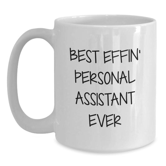 Funny Personal Assistant Gifts from Friends, Unique White Coffee Mug for Best Effin' Personal Assistant Ever, 11oz or 15oz Ceramic, Microwave and Dishwasher Safe