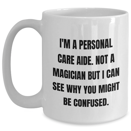 Funny Personal Care Aide Gifts - I'm A Personal Care Aide. Not A Magician But I Can See Why You Might Be Confused. - Gifts from Family to Personal Care Aide Men - Black Coffee Mug