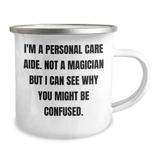 Personal Care Aide Gifts from Men for Father's Day Funny Camping Mug, I'm A Personal Care Aide, Not A Magician, Gifts for Personal Care Aide