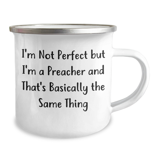 Funny Preacher Gifts, White Coffee Mug, Father's Day Unique Gifts from Men to Friends, 'I'm Not Perfect But I'm A Preacher And That's Basically The Same Thing'