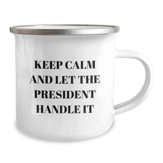 Funny President Christmas Unique Gift for President Friends and Family - Keep Calm And Let The President Handle It Camping Mug