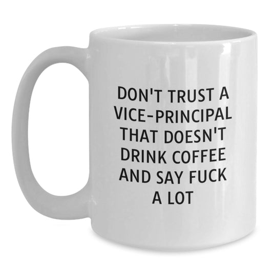 Funny Vice-principal Gifts for Men - White Coffee Mug, Christmas Unique Gifts from Men, Vice-principal White Coffee Mug, 'Don't Trust A Vice-principal That Doesn't Drink Coffee And Say F--k A Lot'