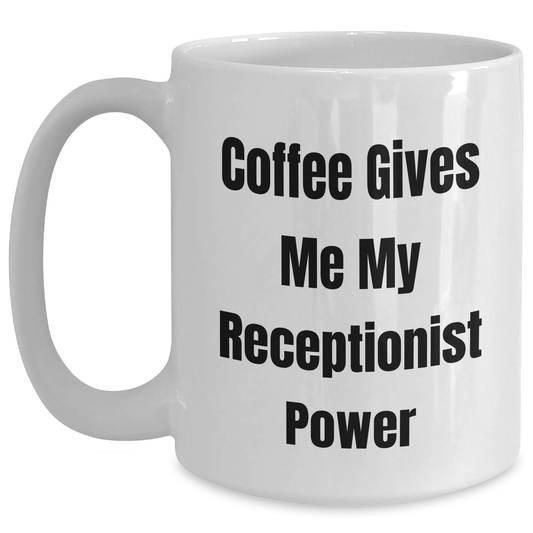 Funny Receptionist Gifts, Coffee Gives Me My Power, White Coffee Mug for Graduation, Gifts from Friends, Gifts for Receptionist