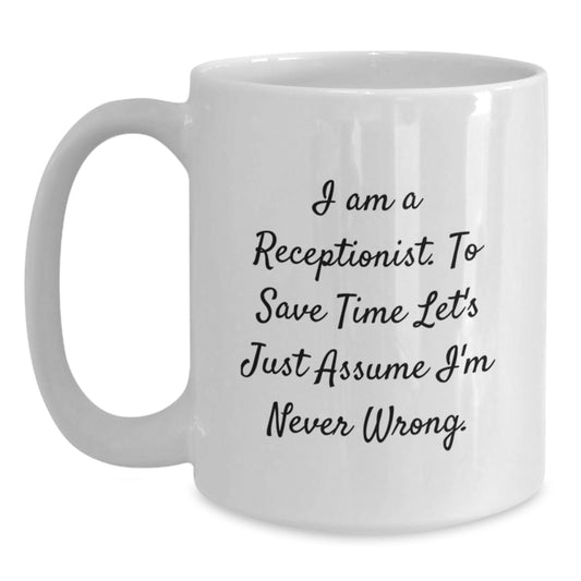 Funny Receptionist Gifts, 'I Am A Receptionist. To Save Time Let's Just Assume I'm Never Wrong.' Black Coffee Mugs for Graduation, Gifts from Friends, Women, or Coworkers