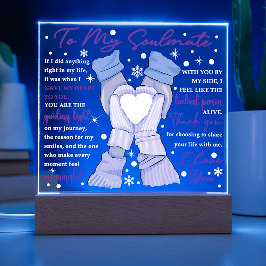 To My Soulmate Acrylic Plaque – Romantic Winter LED Light Gift | “Gave My Heart to You” Christmas or Valentine's Keepsake