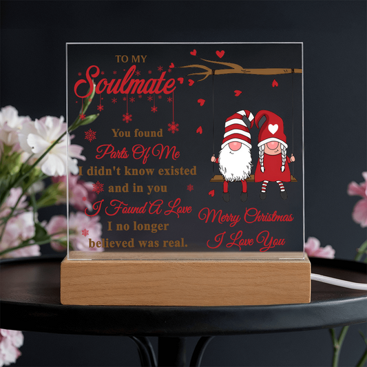 To My Soulmate Acrylic Plaque – Gnome Couple LED Light Gift | Romantic “I Found a Love” Christmas Keepsake