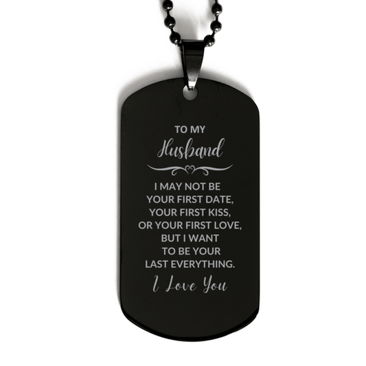 To My Husband I Want to Be Your Last Everything Engraved Black Dog Tag Necklace Romantic Anniversary, Valentine Gift