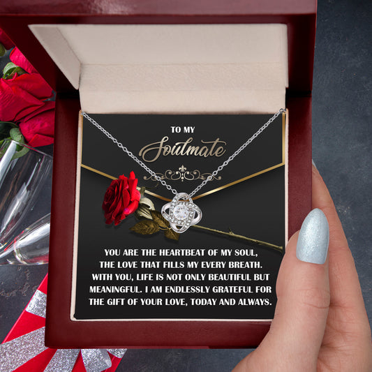 Soulmate Gift - Heartbeat of My Soul - Love Knot Necklace with Sentimental Message Card