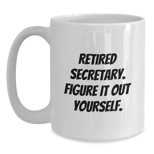 Funny Secretary Gifts, White Christmas Coffee Mug - 'Retired Secretary. Figure It Out Yourself.' for Secretary, Friends