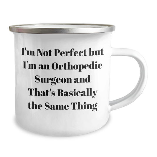 Funny Orthopedic Surgeon Gifts from Men for Mother's Day - 'I'm Not Perfect But I'm An Orthopedic Surgeon And That's Basically The Same Thing' Camping Mug
