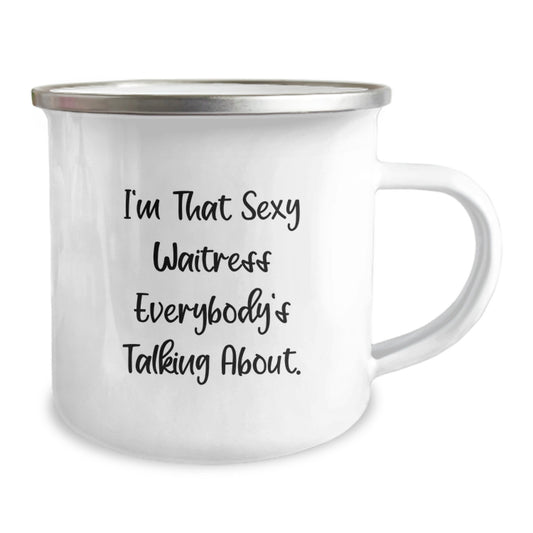 Funny Waitress Gifts for Men, Women, Friends, or Coworkers - I'm That Sexy Waitress Everybody's Talking About Camping Mug for Christmas Unique Presents