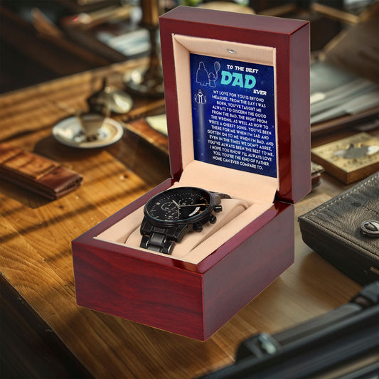 To the Best Dad Ever Black Chronograph Watch Gift – Meaningful Father's Day Gift from Son or Daughter, Thoughtful Dad Appreciation Keepsake, Water-Resistant Stainless Steel Watch with Sentimental Message Card
