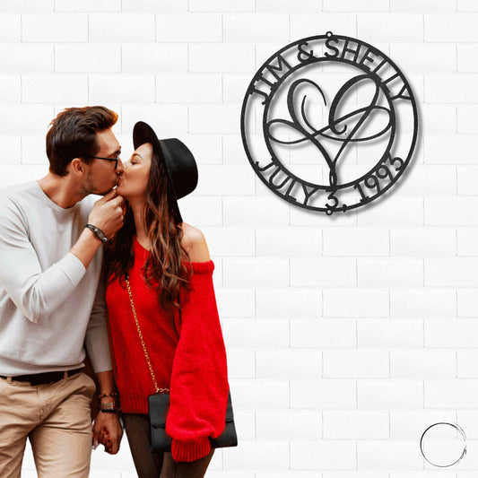 Custom Heart Shaped Monogram Personalized Steel Wall Sign