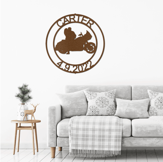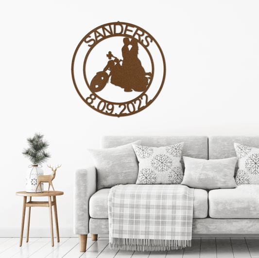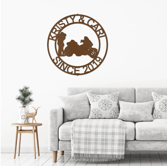 Motorcycle Couple Personalized Metal Art Wall Sign
