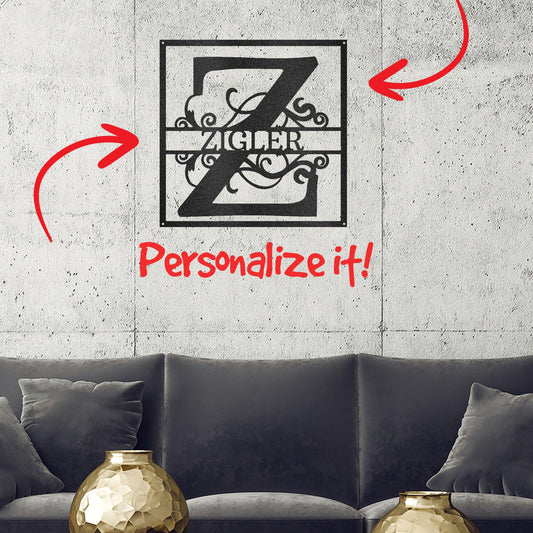Personalized Split Square Custom Initial and Name Steel Wall Sign Metal Art