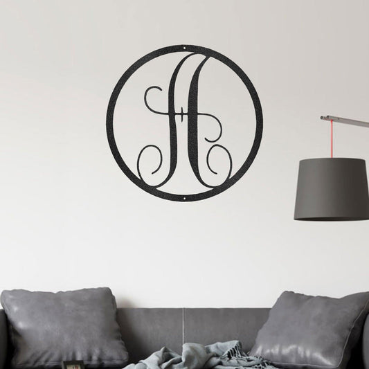 Fancy Initial Circle Custom Monogram Metal Wall Art