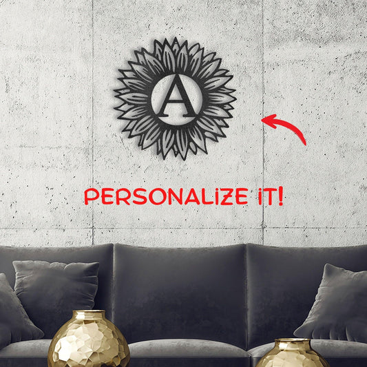 Sunflower Monogram Metal Art - Custom Initial, Perfect for Home & Garden