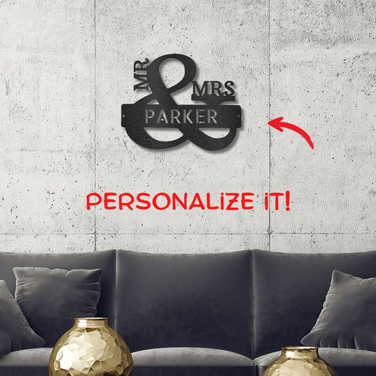 Couples Custom Name Monogram Mr. and Mrs. Steel Wall Sign