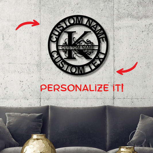 Personalized Elaborate Split Letter Name Initial Indoor Outdoor Steel Wall Sign Metal Art