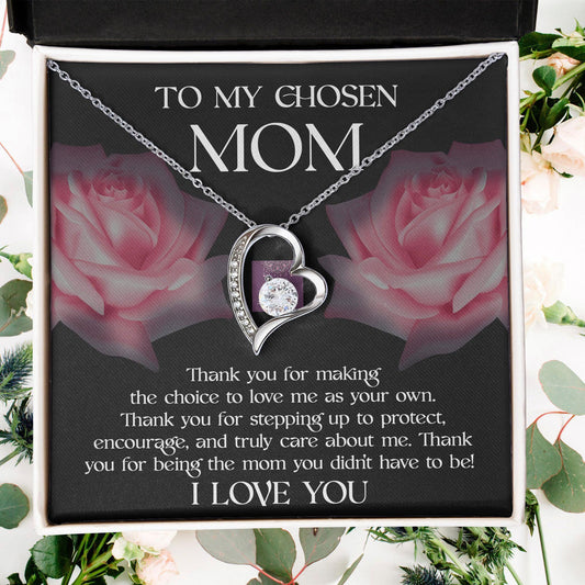 To My Chosen Bonus Mom Thank You for Stepping Up Forever Love Heart Pendant Necklace