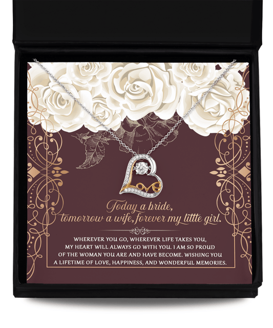 Daughter Wedding Day Gift Today a Bride Always my Little Girl - Love Heart Pendant Necklace Gift for Bride