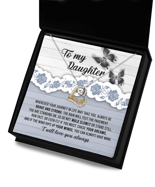 Daughter Wedding Day, Graduation, Birthday Gift - Chase Your Dreams Always Have My Wings - Love Dancing Heart Pendant Necklace