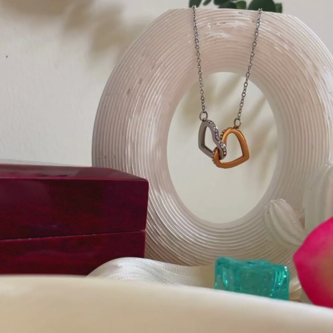 ⨠Elegant & Timeless DesignāThis Necklace features two interlocking hearts, symbolizing an unbreakable bond. It is crafted from stainless steel and finished in rose gold or 18K yellow gold.