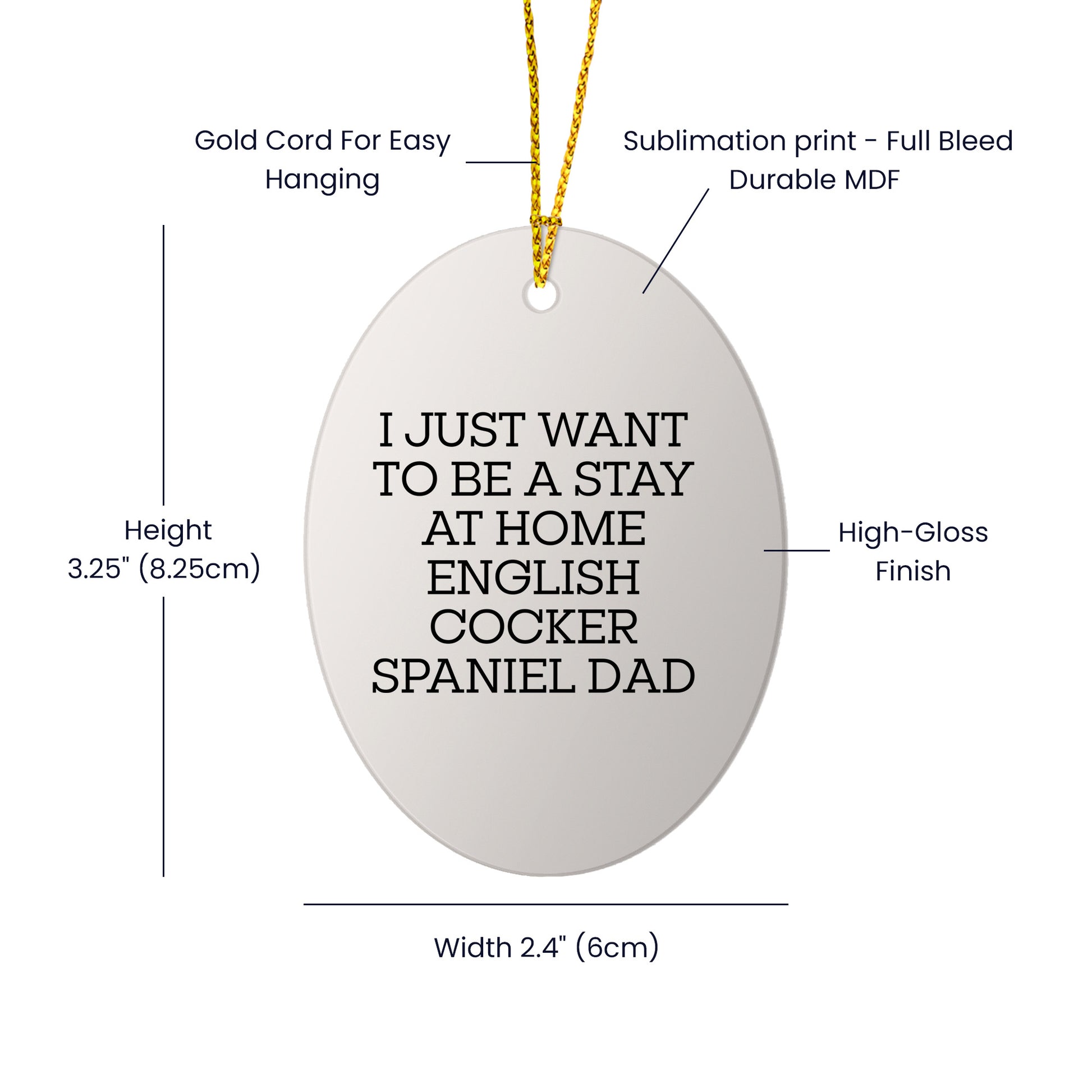 Funny and unique oval ornament for English Cocker Spaniel lovers, featuring the quote "I Just Want To Be A Stay At Home English Cocker Spaniel Dad."