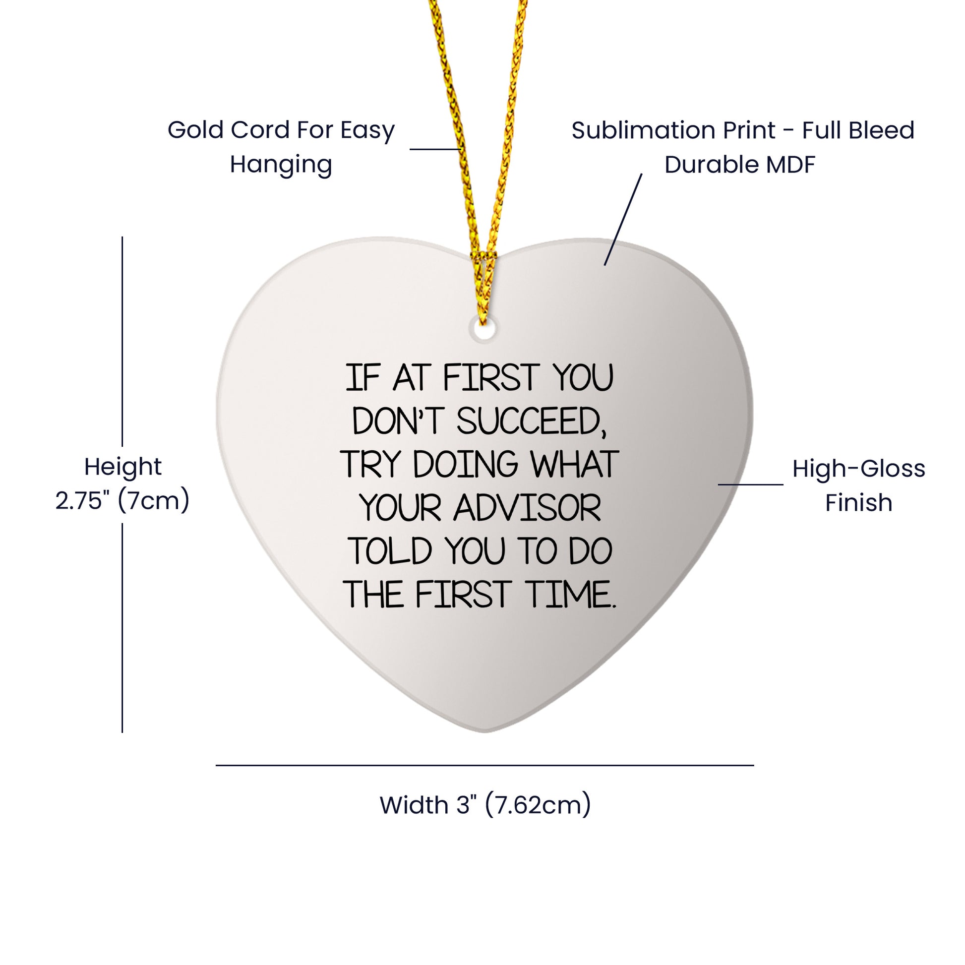 - This heart-shaped ornament is a funny and inspirational gift for your Advisor, friends, family, men, women, coworkers, or anyone who appreciates a good sense of humor and advice. It's a great way to show your appreciation and gratitude for their guidance and support. The inspirational quote on this heart-shaped ornament will remind them of the importance of following their advisor's advice.
