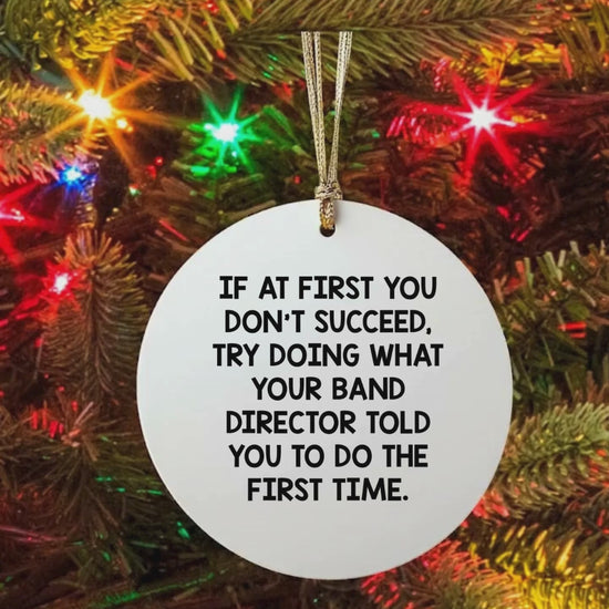 Are you a Band Director who has made a lasting impact on your students? This Christmas, bring a touch of nostalgia with our "If At First You Don't Succeed, Try Doing What Your Band Director Told You To Do The First Time" circle ornament.