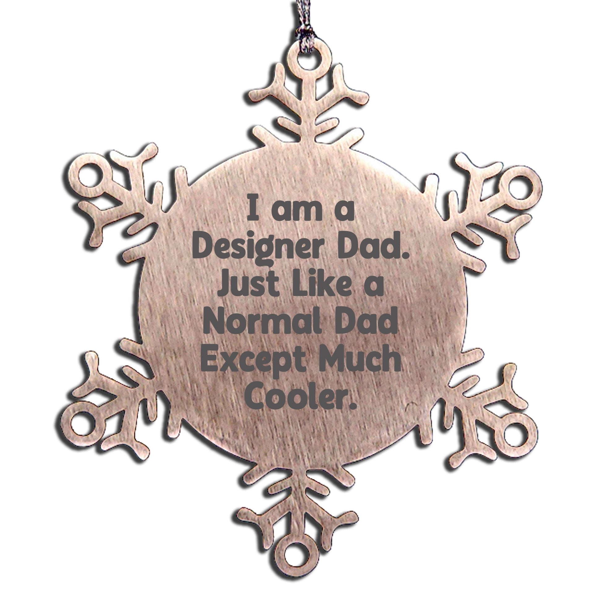 Are you a designer with an eye for style, looking for the perfect gift to show Dad you care? Meet the Designer Snowflake Ornament, crafted from premium stainless steel that’s shatterproof, durable, and safe for the whole family. Measuring 3.14 inches in diameter, it’s a standout piece for any Christmas tree. Just like a normal dad, only much cooler, a Designer Dad will appreciate the thought and elegance behind this meaningful gift. Whether it’s for him or as a family keepsake, this ornament is ideal for any occasion and a charming addition to holiday décor. With its humorous quote, “I Am A Designer Dad. Just Like A Normal Dad Except Much Cooler,” it blends durability, style, and a playful touch. Perfect for designers or anyone who loves unique gifts, it’s a thoughtful way to celebrate the season and create lasting memories.