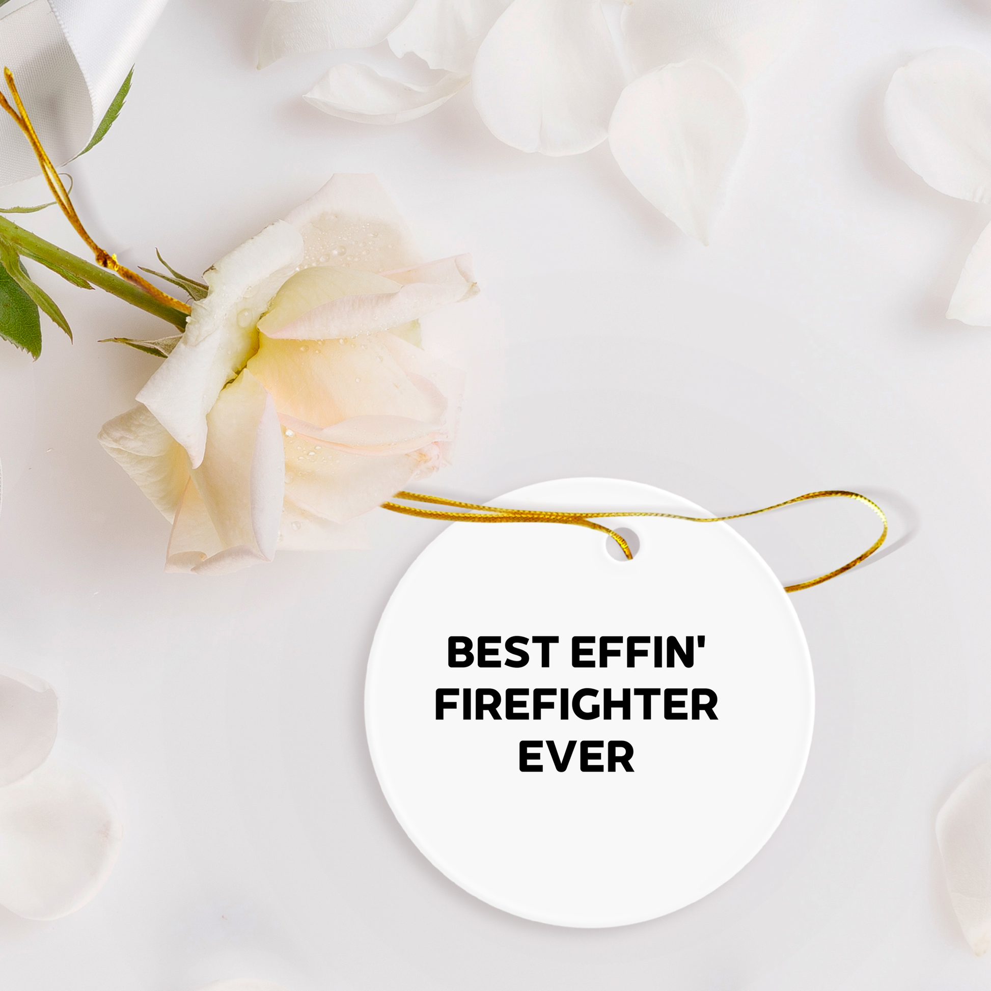 Whether you’re a firefighter enthusiast or searching for the perfect gift for the brave hero in your life, this Best Effin’ Firefighter Ever Circle Ornament makes an ideal choice. Crafted from sturdy MDF with a high-gloss plastic finish, it’s built to last and designed to impress. Featuring vibrant, edge-to-edge sublimation printing, the bold quote stands out, celebrating the courage and dedication firefighters show every day. Lightweight and break-resistant, it’s perfect for homes with kids or pets, and the festive gold cord adds an elegant touch for easy hanging. Whether for Christmas, a birthday, or just because, this ornament is a fun and heartfelt way to show your appreciation and support for the firefighters who make a difference.