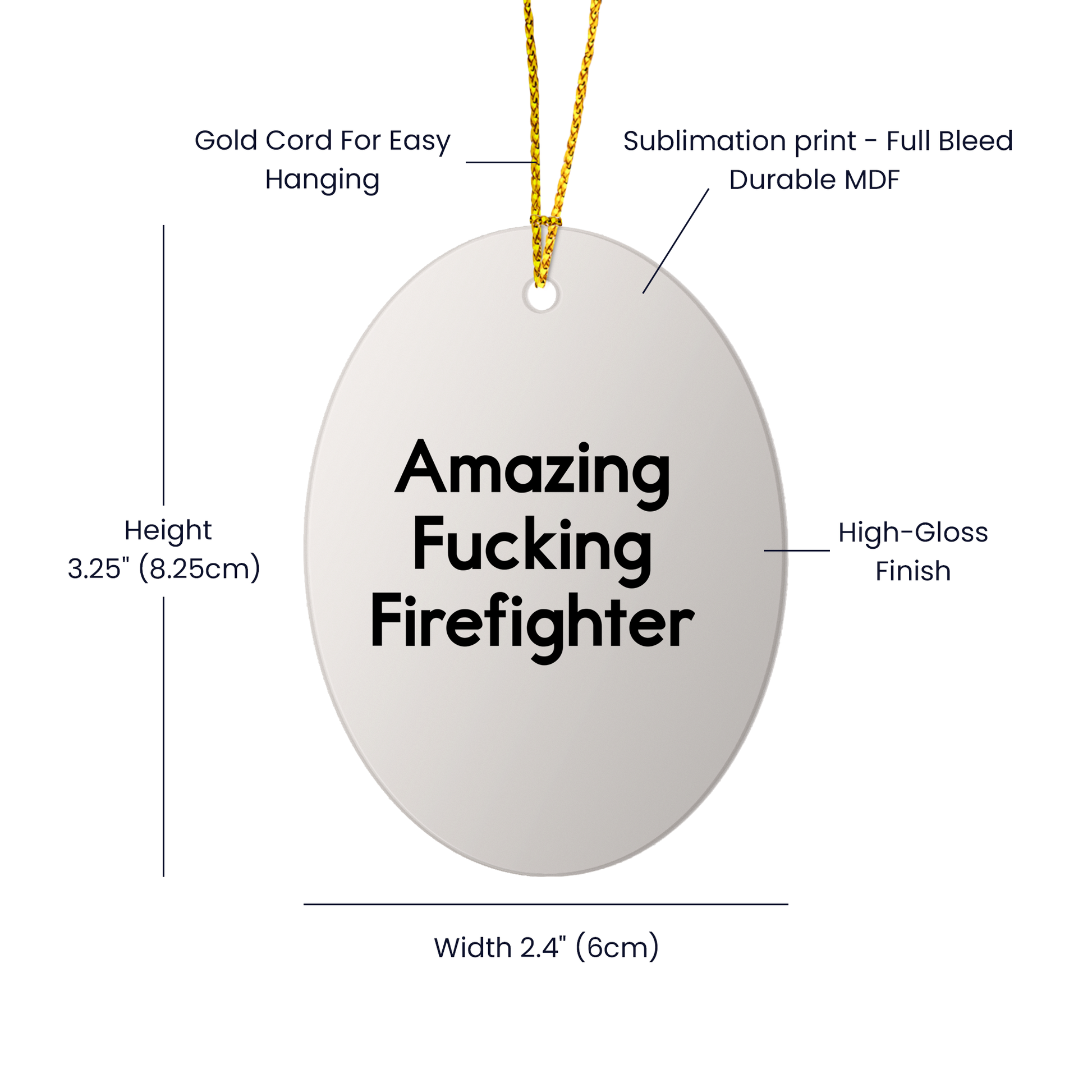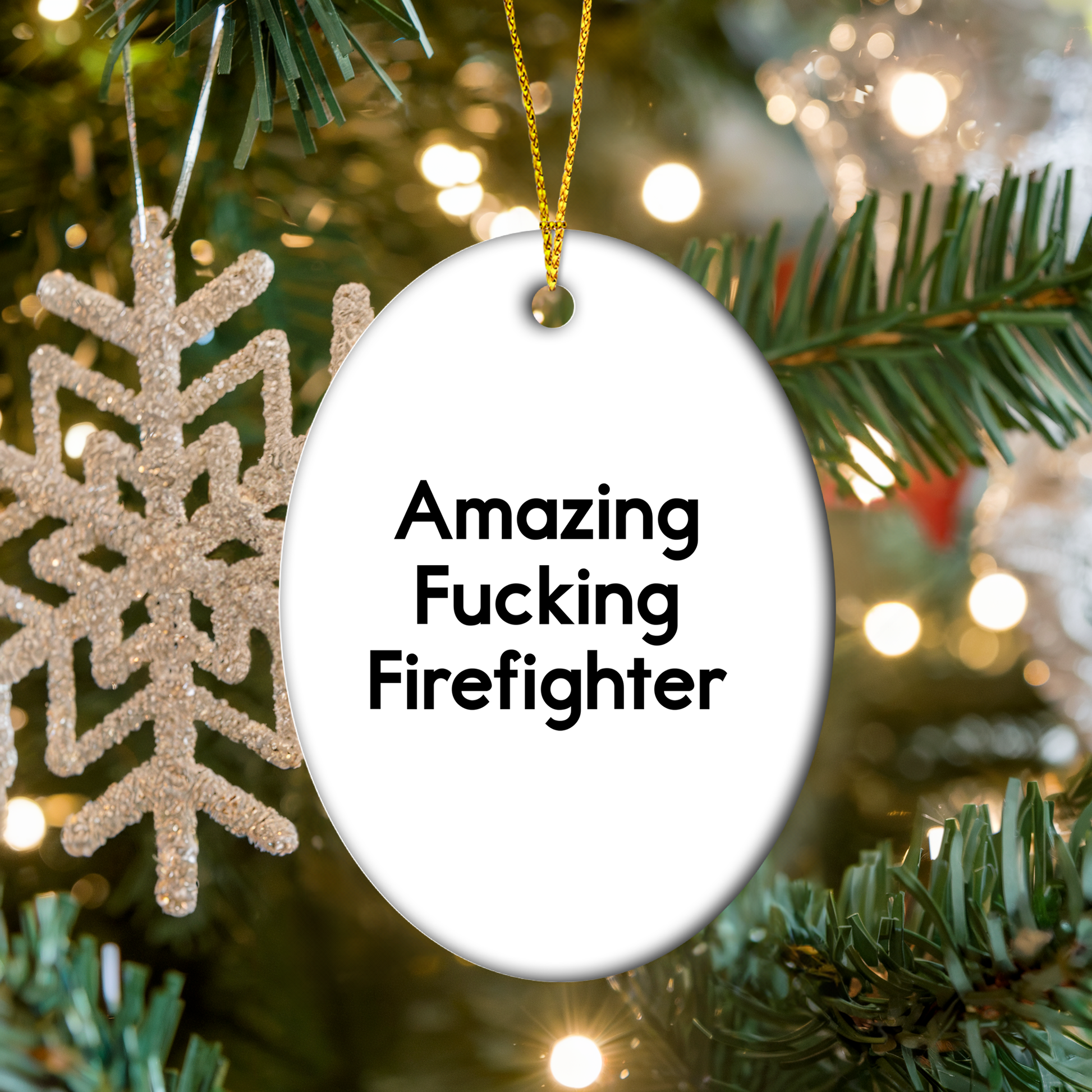 Looking for a unique and funny gift for your favorite firefighter? This Amazing F--king Firefighter Oval Ornament is a perfect pick. Crafted from sturdy MDF with a high-gloss plastic finish, it’s built to last and offers a vibrant display. The humorous yet inspiring quote makes it a standout piece for any firefighter’s home or office. Whether you’re a firefighter or simply admire the profession, this ornament is sure to bring a smile. It’s great for gifting from family, friends, or coworkers to brighten the holiday season, and its lightweight, durable design is ideal for homes with kids or pets. Perfect for Christmas décor, it’s a thoughtful and entertaining way to show appreciation for the bravest men and women. Don’t miss out on making someone’s holiday unforgettable with this must-have ornament.